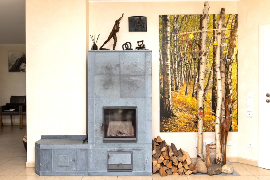 • Kamin im Wohnbereich mit Frischluftzufuhr über das Kellergeschoss