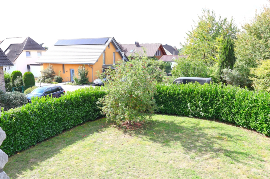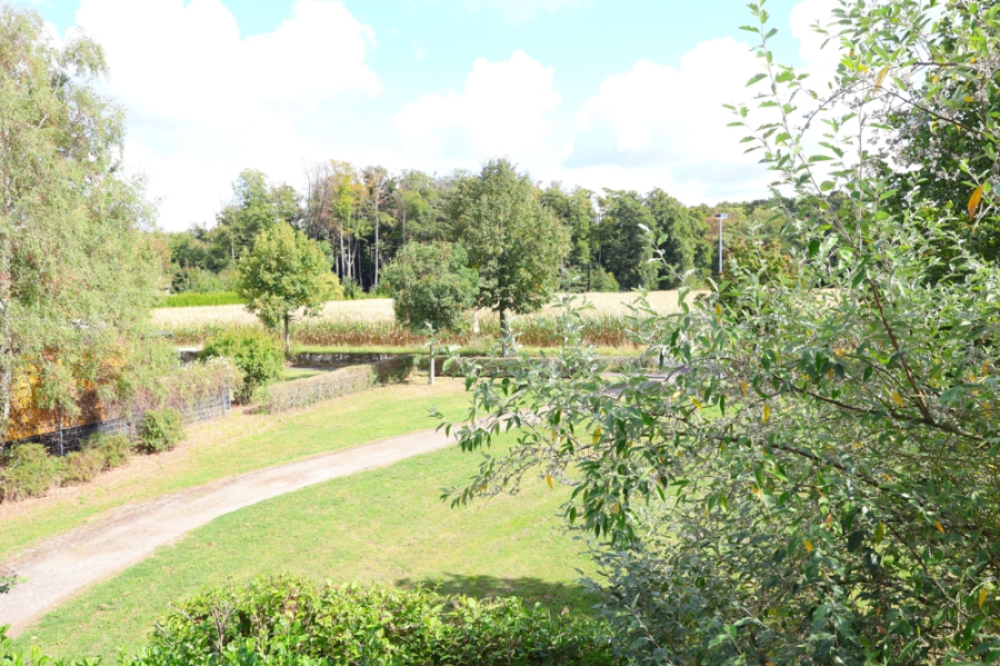 Durch die traumhafte Umgebung genießen Sie vom Obergeschoss aus einen herrlichen Weitblick ins Grüne.