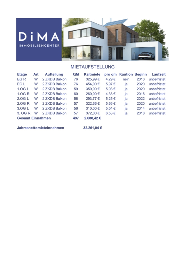 Zum Verkauf steht ein gepflegtes und voll vermietetes 8-Familienhaus in guter Wohnlage – ergänzt durch ein sofort bebaubares Grundstück mit bereits erteilter Baugenehmigung für den Bau eines weiteren Mehrfamilienhauses. Dieses Ensemble bietet eine seltene Kombination aus laufenden Mieteinnahmen und sofortigem Entwicklungspotenzial.