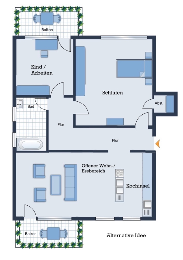 zwei Balkonen, die Ihnen zu